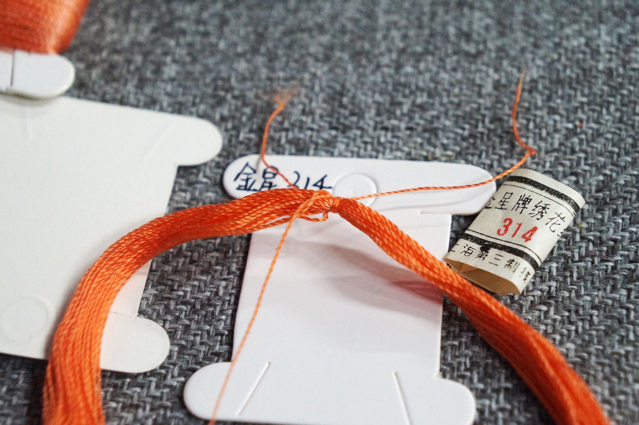 每支绣线打开来能看到一个捆绑住的地方,那里就是线头和线尾