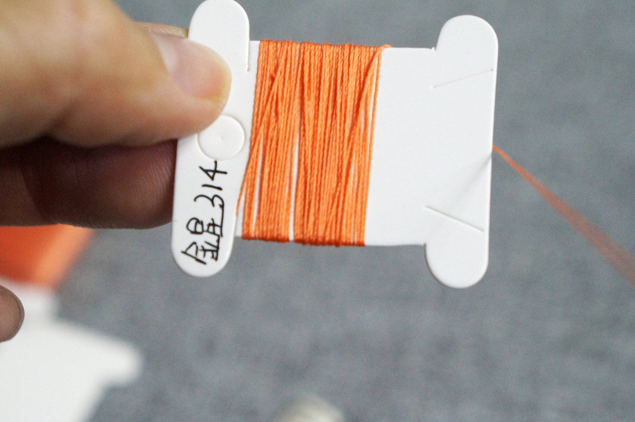 先将绣线的色号写在绕线板上,一定要提前写好,因为等绕完线很容易就不知道色号的那个小纸片跑哪里去了