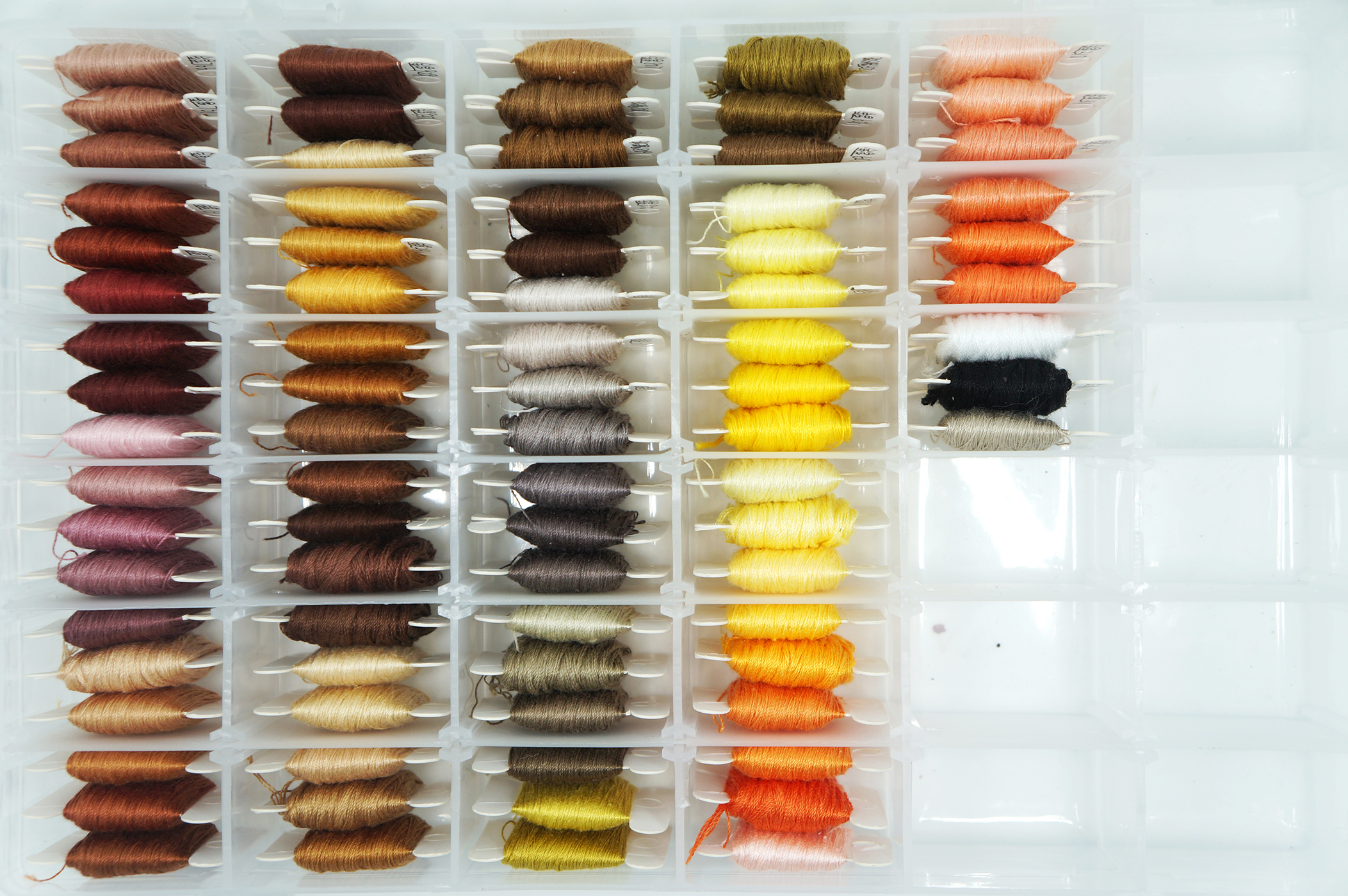 一开始我先挑出同一个色系的绣线整理,每天进展非常地缓慢,绣线总不见少