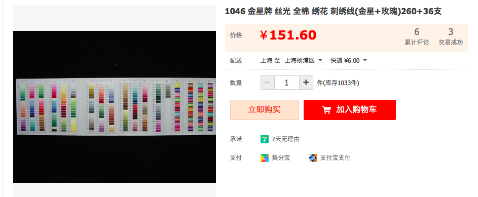 金星的绣线价格便宜,拿到手之后觉得颜色的确不错,有几个颜色是用玫瑰牌补的,明显缺了光泽度,所以建议如果想要买的话还是要求店主都给金星吧,少几个颜色并无大碍