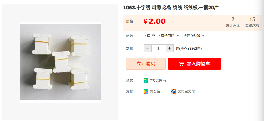 后来买金星绣线的时候,因为数量多,而且觉得是金星应该没有关系,所以买了纸质的绕线板,拿到手就觉得质量其实还不错,绕线使用足够了,而且可以直接在上面写绣线的色号,很方便。不过回头再看的时候发现买贵了。我因为贪图方便在同一家买,你们就自己随意了~
