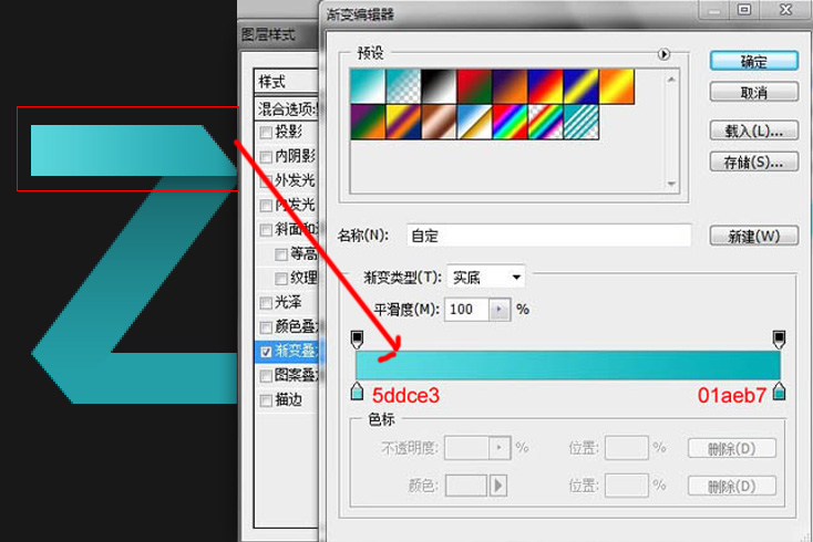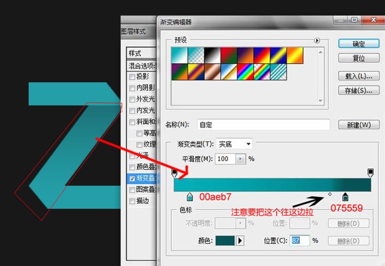 4、我们来添加投影,也就是渐变效果,先加竖条效果会先出来。如下图。我们的第一步效果就出来了。然后我们按照光影的方向去做,很简单的道理就是,如果你是左边亮就是右边暗,学过美术的应该很容易理解,没有基础的朋友可以按照效果图看着弄。