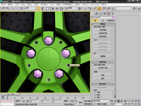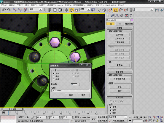 将角度捕捉改为72度(右键点角度捕捉按钮),因为是五辐,360/5,小学算术,呵呵,(当然有的人喜欢用阵列,不过我在制作比较好计算的辐条数的轮胎时还是觉得这样方便,阵列留给7、11、13这些怪物轮毂吧),旋转复制四个,也是实例