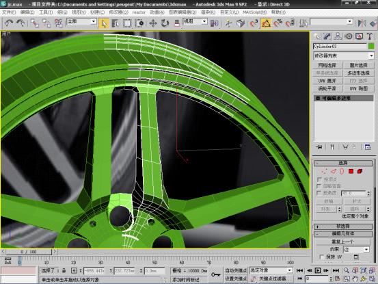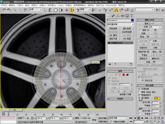 选择边界,依次拖出轮毂缘的层次,为了方便造型,可以将之前冻结的两个圆柱体隐藏