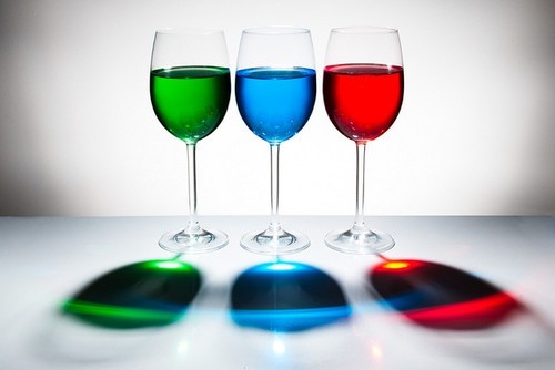 以三面光源包围着玻璃瓶,使之反射的光线足够饱满