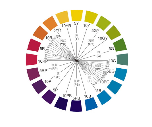 再把他们中间插入中间色:黄红 (YR)、黄绿 (GY)、蓝绿 (BG)、蓝紫 (PB)、红紫 (RP),也是五种。
