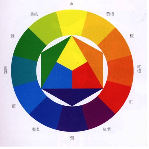 我们再进一步研究一下这个问题。上一幅孟赛尔色环图里有中文标注,看来去比较亲切,不过偏色比较厉害,再上一幅颜色比较正的。