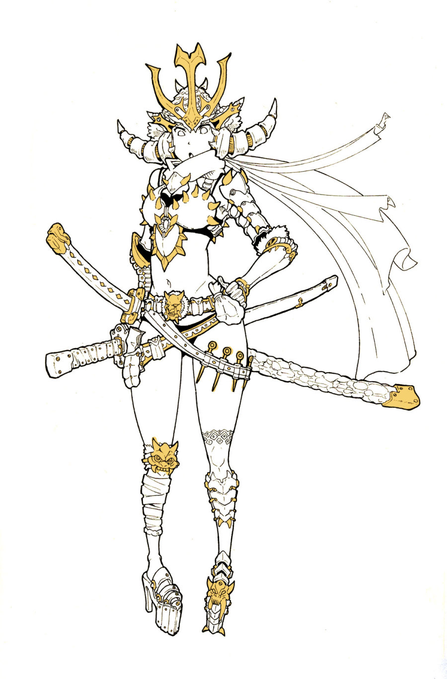 先讲讲这次上色的契机,前两天在站酷首页看到白用感叹号大神的丙烯上色,感慨颇深。自己便也画了个女武士上一下色,由于不习惯数位板,所以我的画一般是手