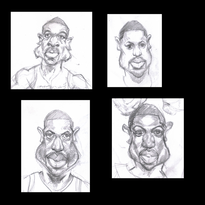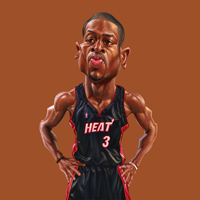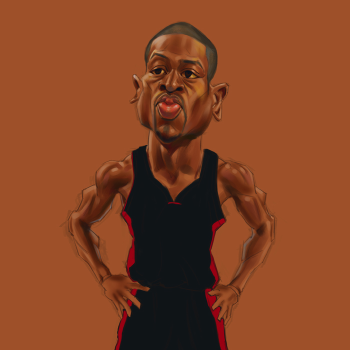 我打算画四个NBA球星的肖像漫画(科比,杜兰特,韦德,詹姆斯),前两个画得不太理想,这个韦德自己挺满意,借着热火夺得总冠军的时候,分享下自己的作画思路和绘画经验跟喜欢肖像漫画的同好分享。