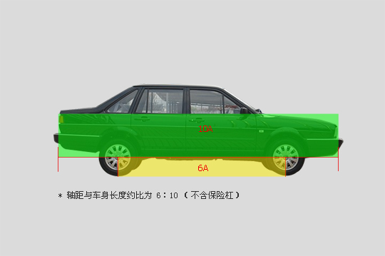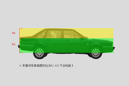 我们都知道黄金比例是1:1.618,那么该比例在汽车设计中是否受用呢?我找来了santana的车身侧图。