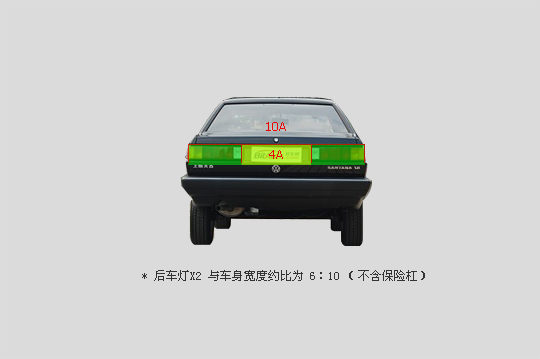 后车灯较前车灯更宽,因此,两车灯宽度之和与整车宽度只比为6:10