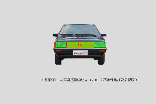 车的前脸主要由车灯和进气栅格组成。经过测量进气栅格正好与车宽约为6:10