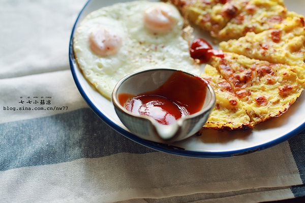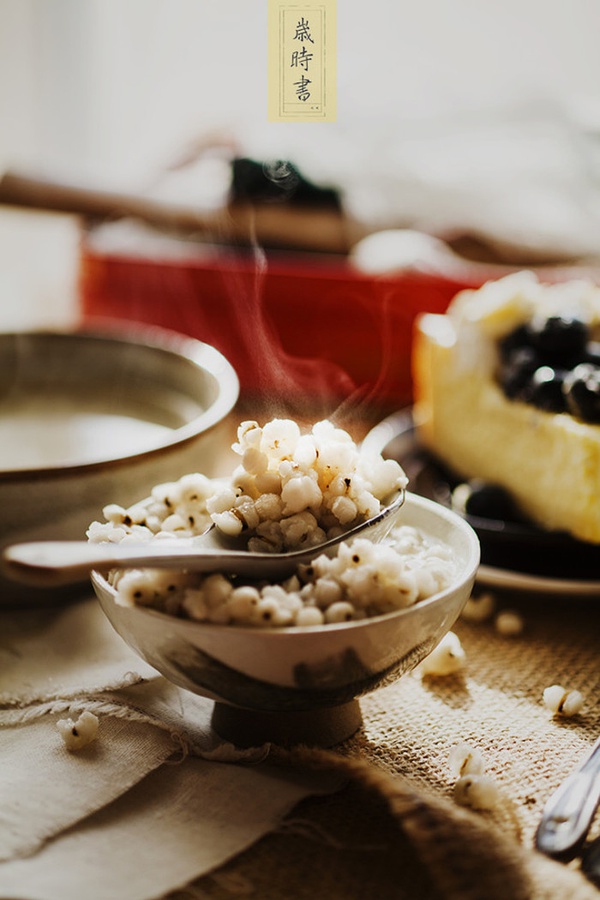 下面三图,表现的分别是:荷包蛋的光润油滑(利用油的反光来实现)、全麦面包的酥脆健康(利用面粉和麦粒这些道具来实现)、薏米粥的热气腾腾(抓紧刚出锅冒白烟的一刻实现)