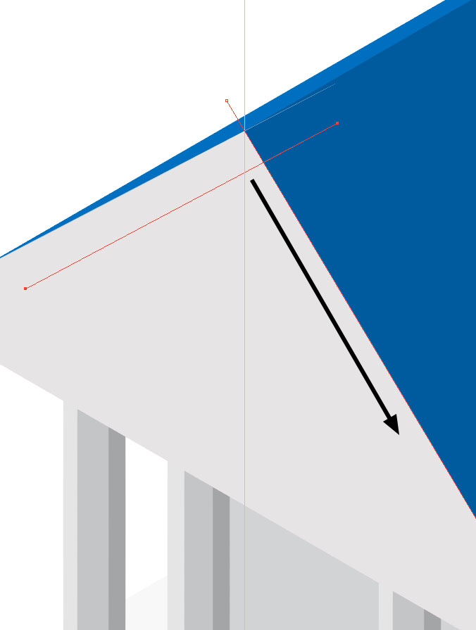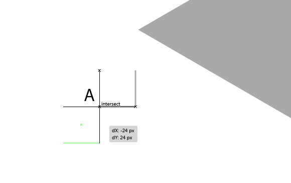 现在离开的曲折路径可以被删除.建立的基础,我们需要一个倾斜和垂直引导正确的表面,应拉出垂直标尺(Cmd/Ctrl+R).放置在下面的图片所示的指导.