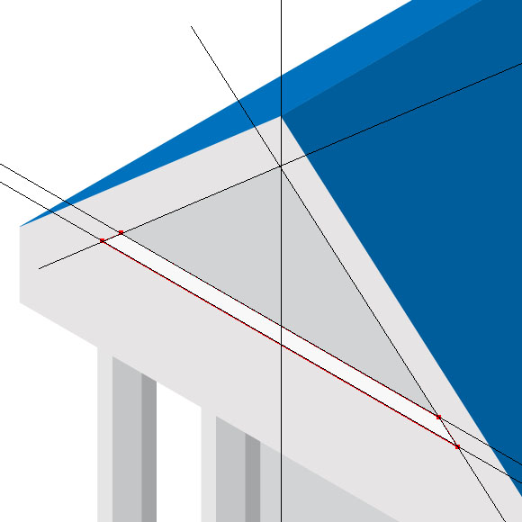 因此,我们位于屋顶的脊的位置.现在我们可以很容易地创建一个侧表面的斜率等距图标向量的屋顶,山墙