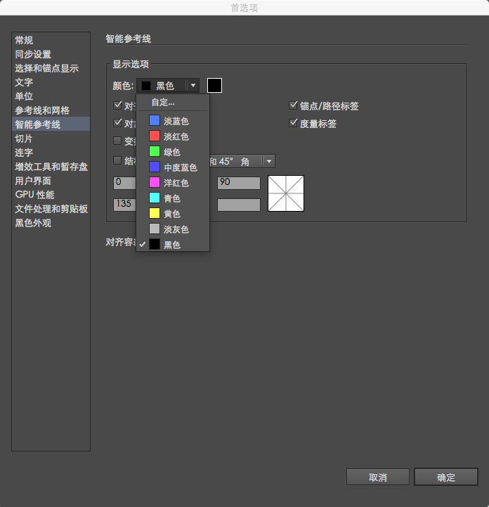 色彩的选择色彩总是友好的指南对应的层在层面板.在我看来它是非常重要的一个智能导游选择对比色.这可以做智能指南部分的设置对话框.