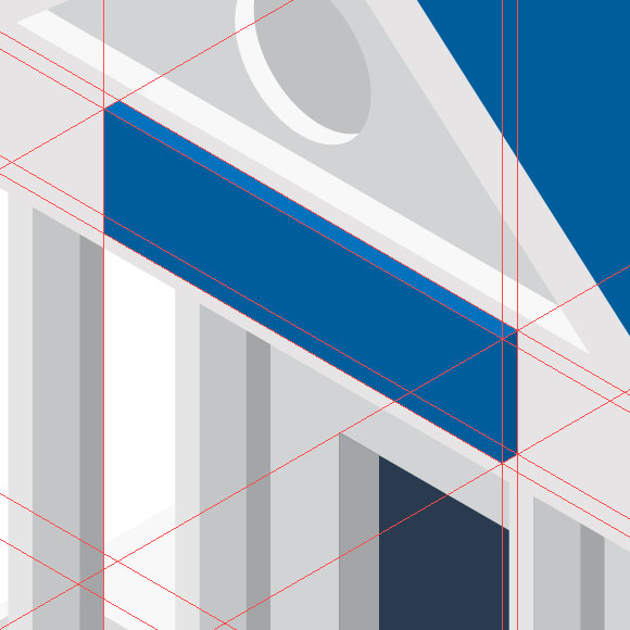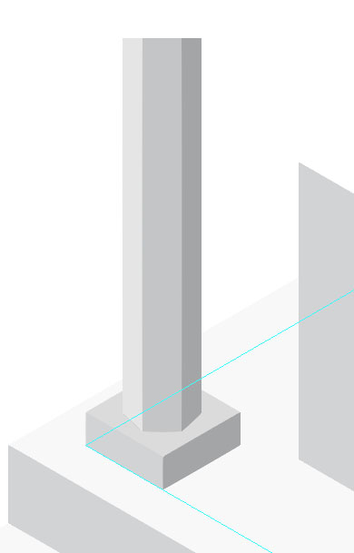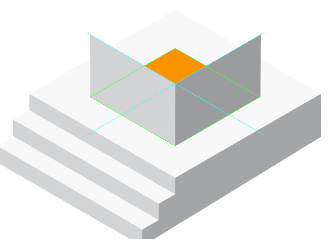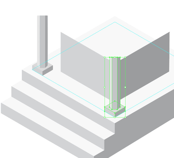 为了快速建立等轴测投影的矩形形状,我们可以使用一个等距网格,这是我们在合适的地方放置.现在创建列的方形底座.