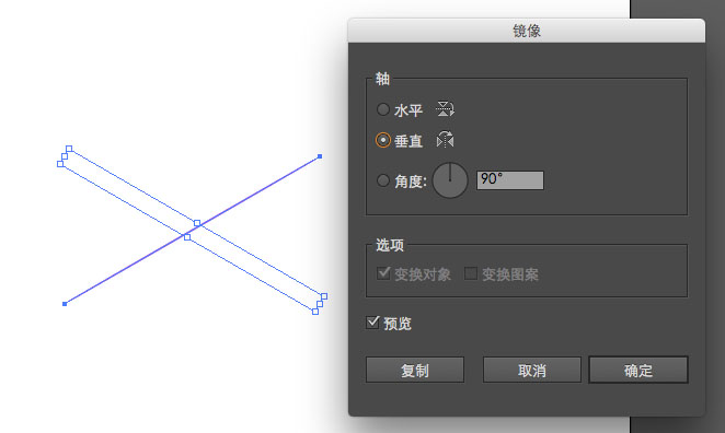 保持选择的路径,去对象>变换>对称.选择垂直轴,然后单击复制对话框.