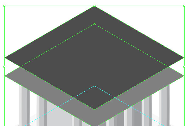 继续创建等距图标矢量的屋顶.复制上面的基础和两份,如下图所示.
