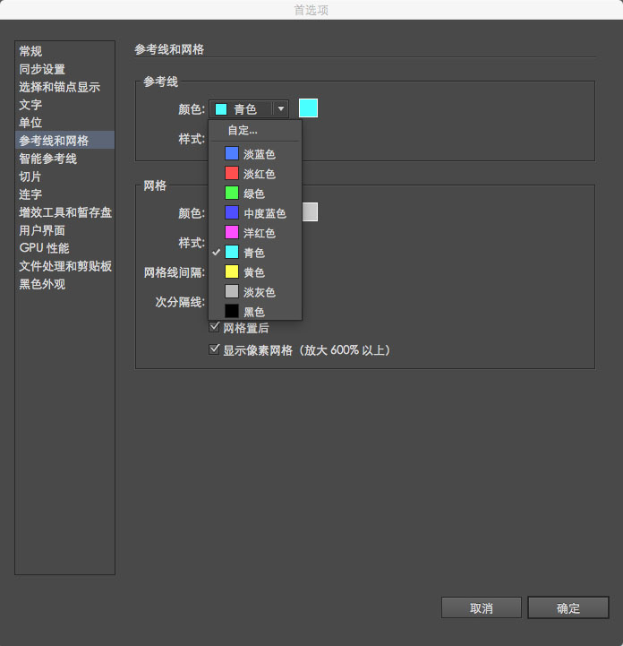 我想提醒你,你可以随时更改首选项对话框(Cmd/Ctrl+K)的指南和网格部分未被选中的参考线的颜色.