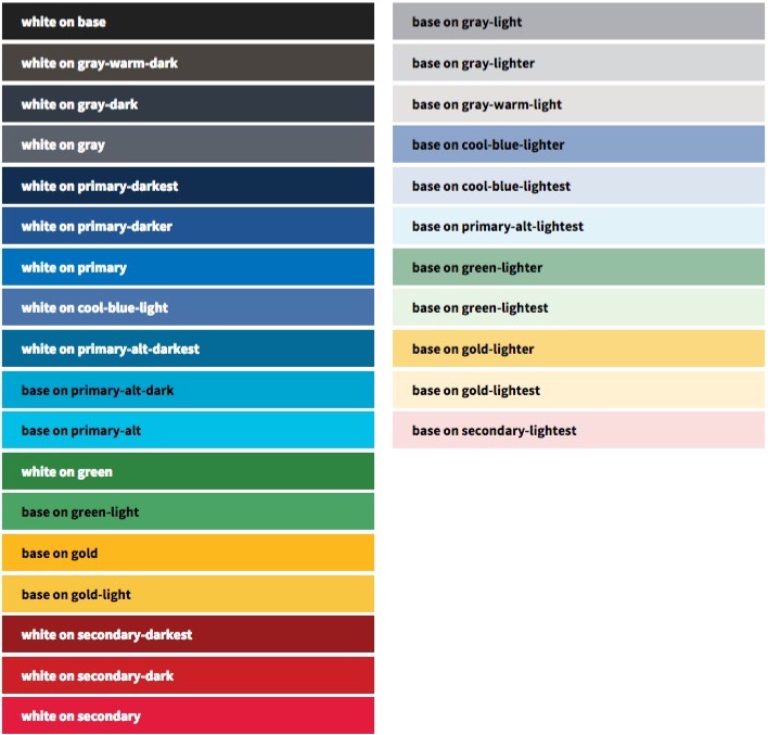 (下图是引用了美国网页设计规范中的视觉某部分,由于web规范颜色有上百种,我们不可能一一记住,我们只需要熟悉这几种常用的色彩,有一个感觉,背景色和文字色,那我们在配色的时候也可以直接引用,我们只要记住了这些常用色在色板中的位置,它的明度和饱和度的差异,那我们很容易直接调用它们。)