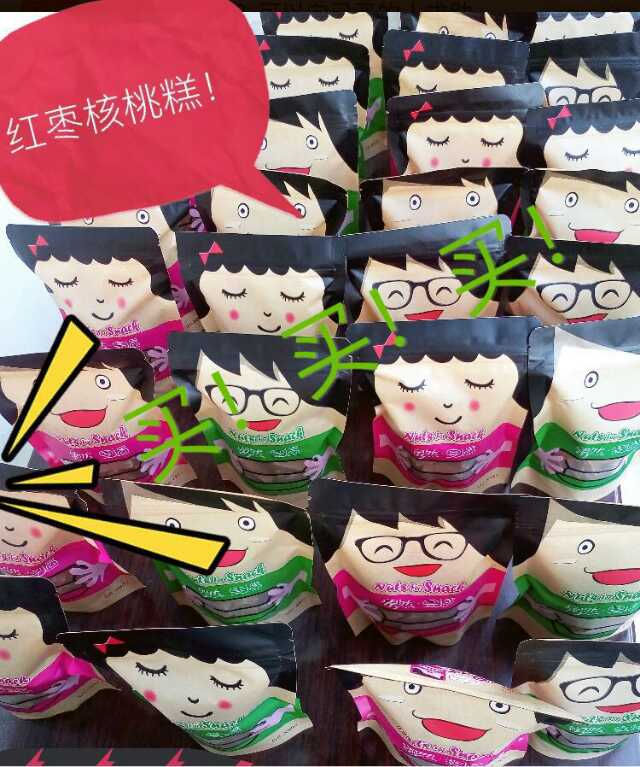 当时我看了包装也觉得还不错哈,但是当我注视上面的名称的时候,我就懵了,这个“果然宴遇”的字体在完全不知情的情况下怎么跑这个上面来了?而且还是和我的完全一样呀,于是我就顺着这个产品找到了几个微商卖家,但是奇怪的是同样的包装居然有很多种产品,经我查清楚后,才发现原来是有人利用这个“果然宴遇”生产系列特色包装袋,如下图: