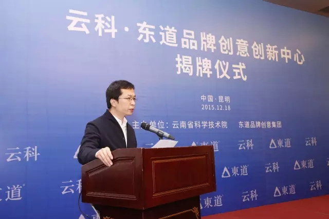 2015年12月18日,由云南省科技厅、云南省科学院、东道品牌创意集团联合主办的“云科·东道品牌创意创新中心”揭牌仪式暨重大合作项目签约仪式在云南省昆明市举行。