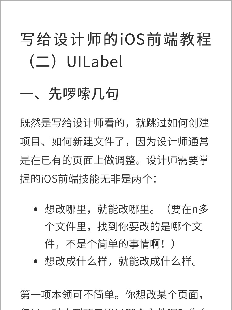 写给设计师的iOS前端教程,看得懂,学得会。更好的阅读体验,请各位移步:http://www.jianshu.com/p/329169bbf523