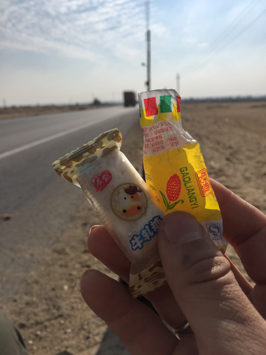 我们的午饭。我带了很多糖果,一路不仅可以逗小朋友还能自用补充能量。此外,我还带了 1000 多个气球。。。