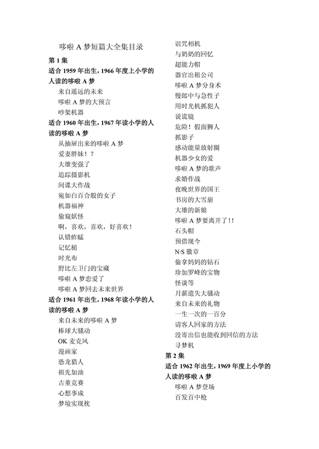 *温馨提示:由于本贴涉及到众多年代以及学年志,在阅读的时候大家可能会觉得比较混乱,所以开头先看下《藤子F不二雄大全集哆啦A梦》短篇大全集目录,结合目录来阅读这篇文章,会比较明朗一点。