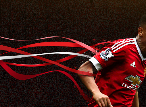 首先处理球员身后的线条。我们要沿着“重建和新生”的主题操作。让球员看上去是挣脱了束缚。束缚,恩,就是那个感觉,棒棒哒。