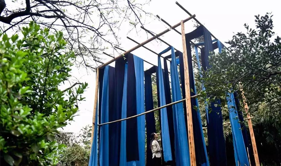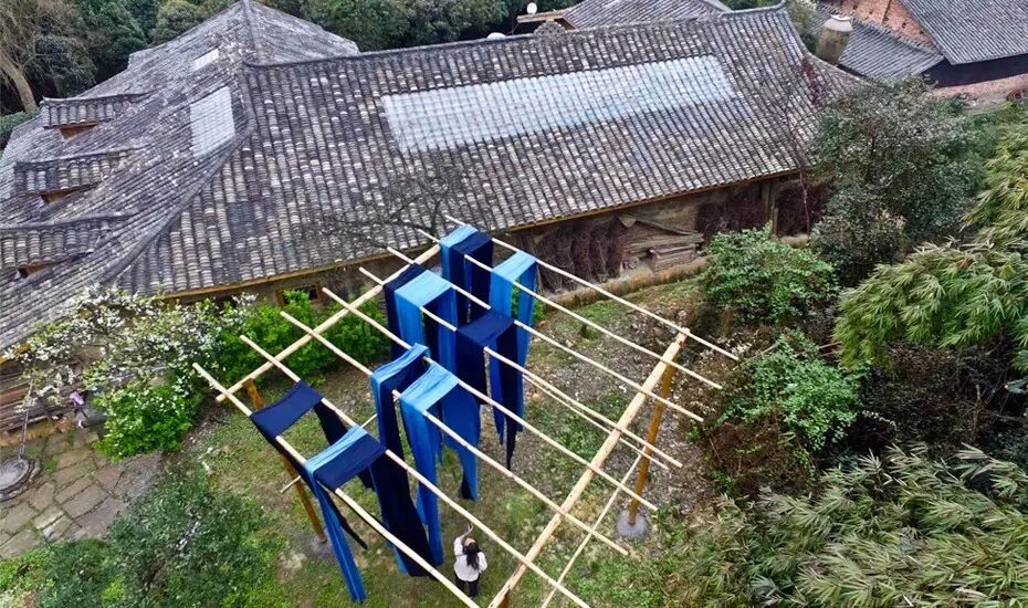循着碎石小径找到寒山的居住地,远远就看到屋后晾晒的一条条手工蓝染布,这些浓淡相宜的蓝在成都特有的阴天里,泛着柔和的光,让人的心也跟着沉静下来。