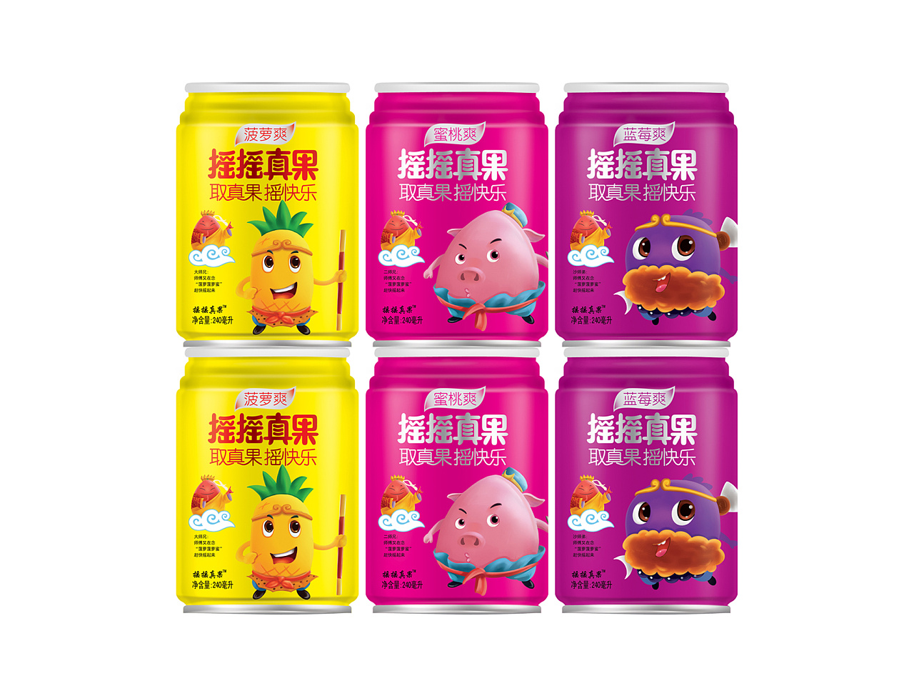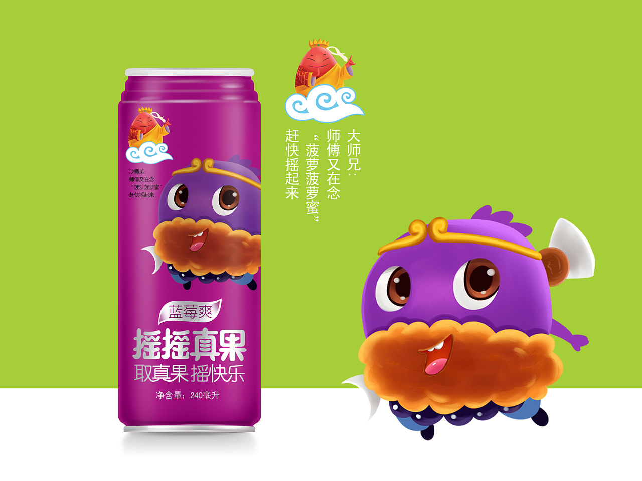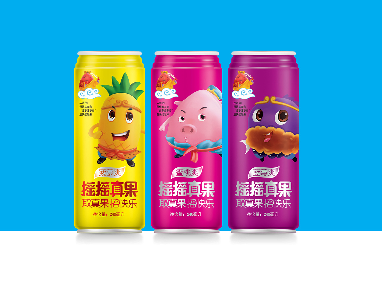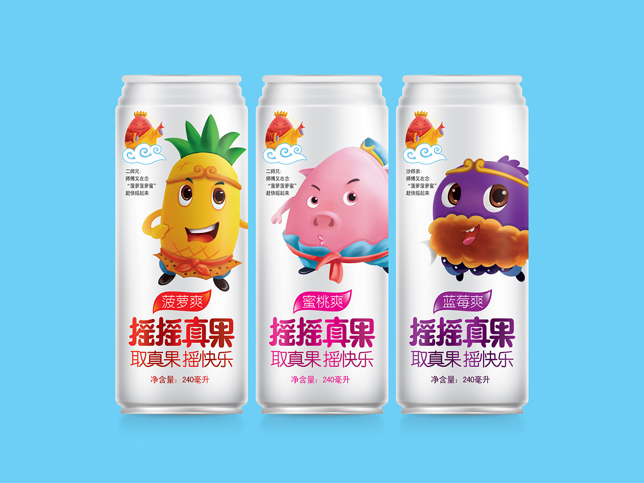 摇摇真果品牌丨果汁饮料包装设计-西游记之《取真果系列》、芒果汁、菠萝汁、蓝莓汁等