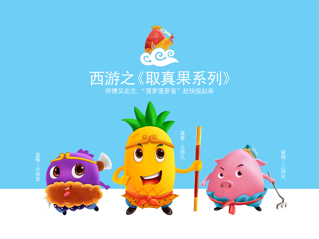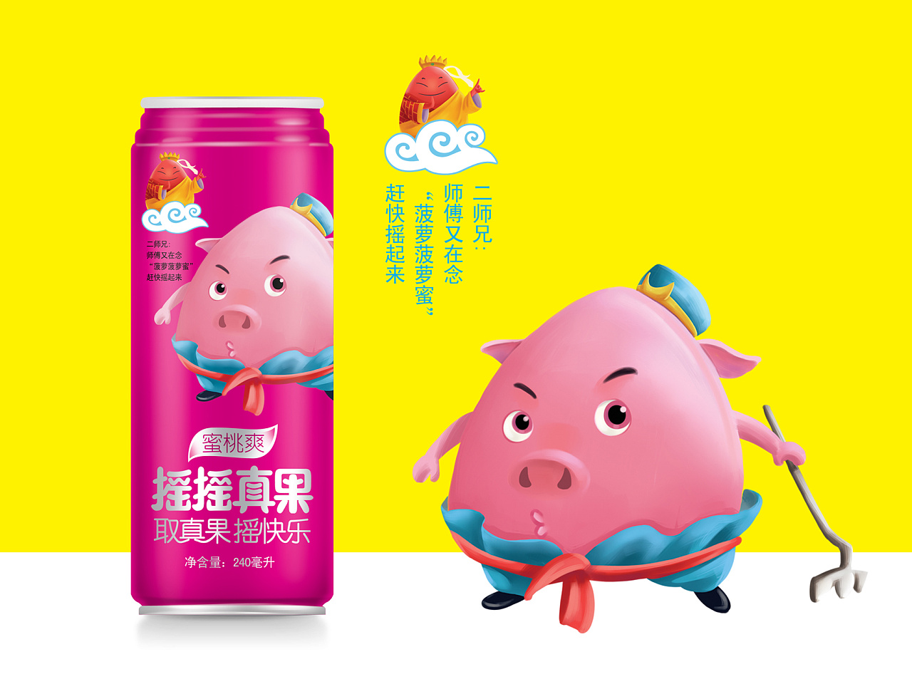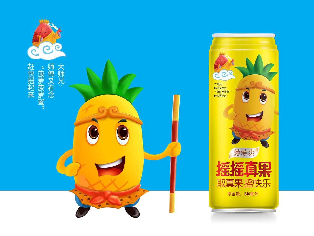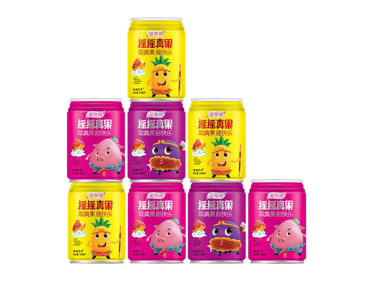 摇摇真果品牌丨果汁饮料包装设计-西游记之《取真果系列》、芒果汁、菠萝汁、蓝莓汁等
