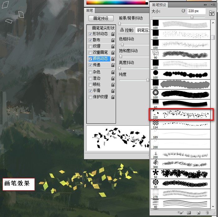 提示:可根据个人需要进行不同质感的画笔组合尝试。