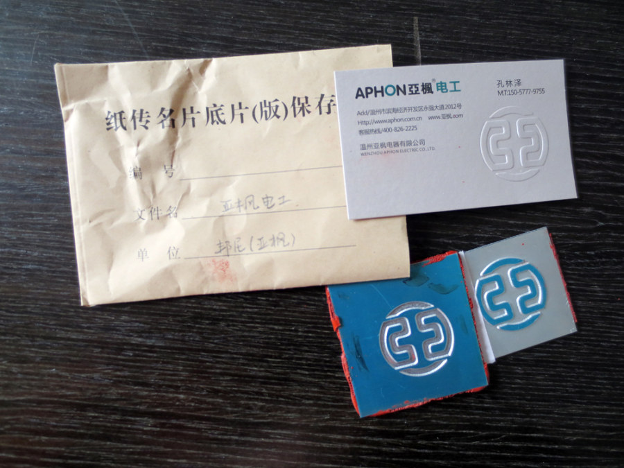 凹凸版材质有锌版和树脂版,锌板用得比较久可持续使用,名片上用锌板居多。