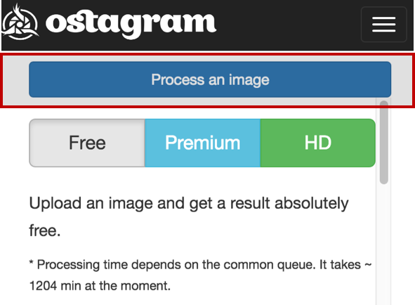 【3】点击页面最上方 Process an image 等待生成即可