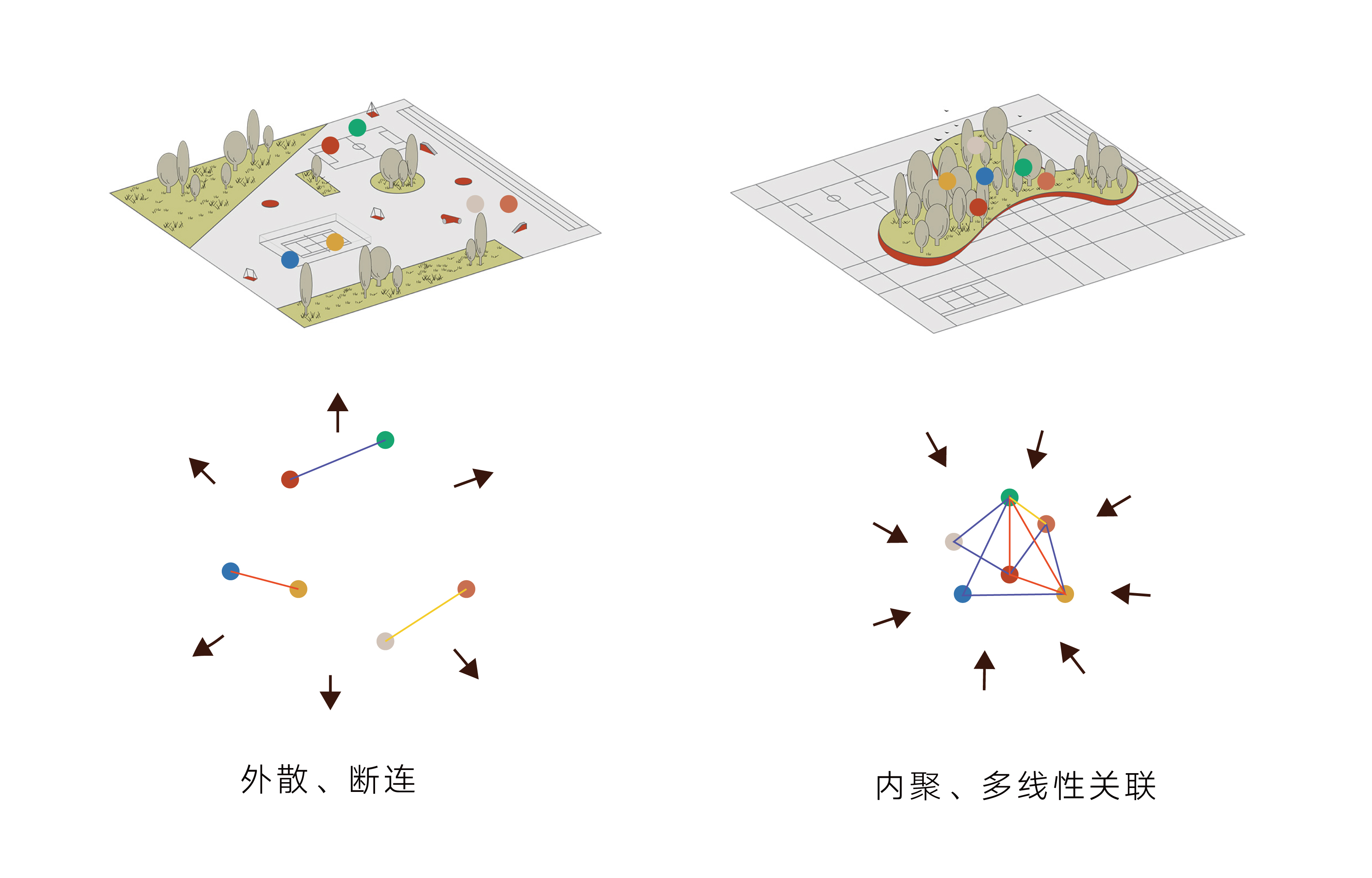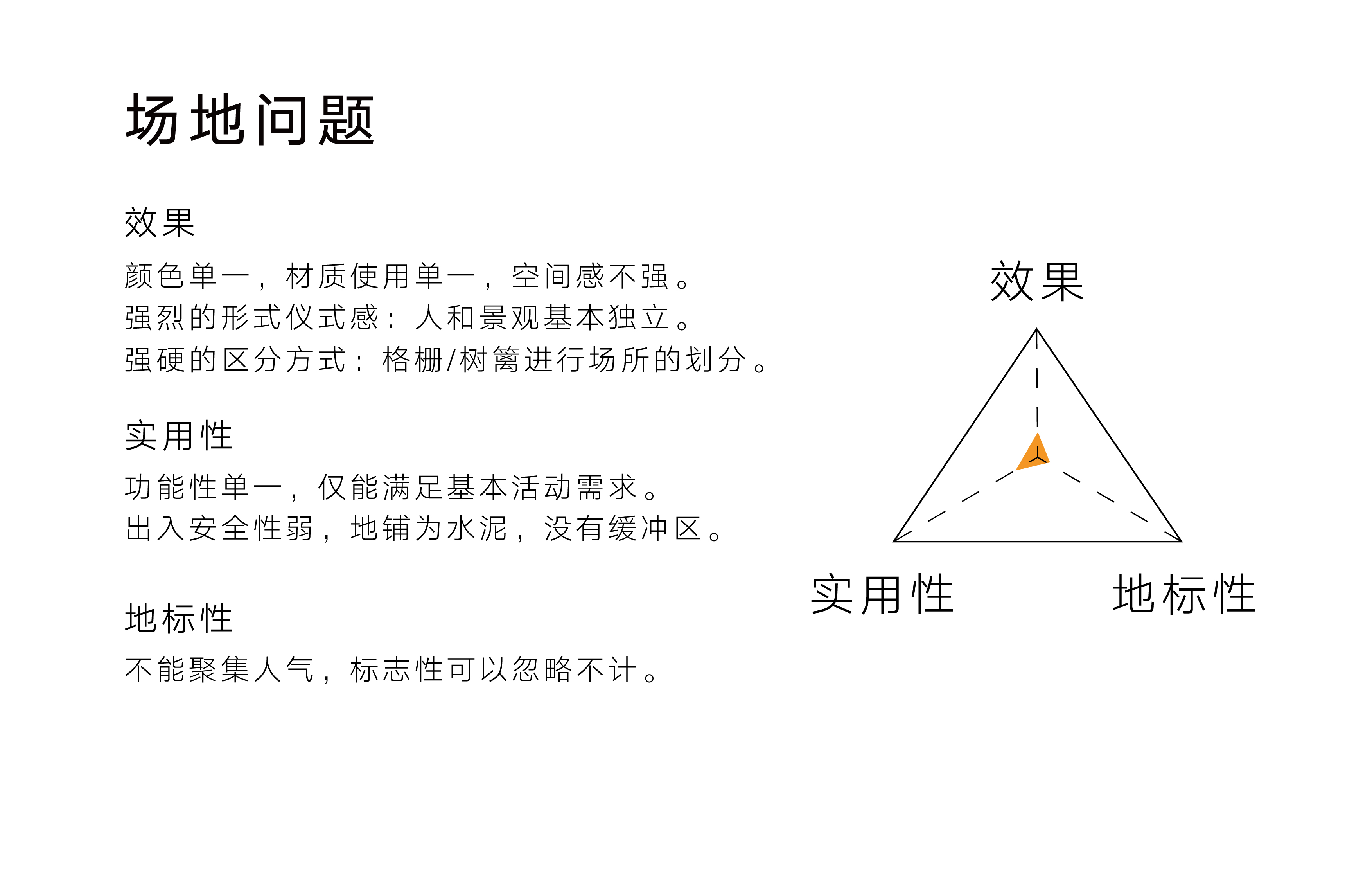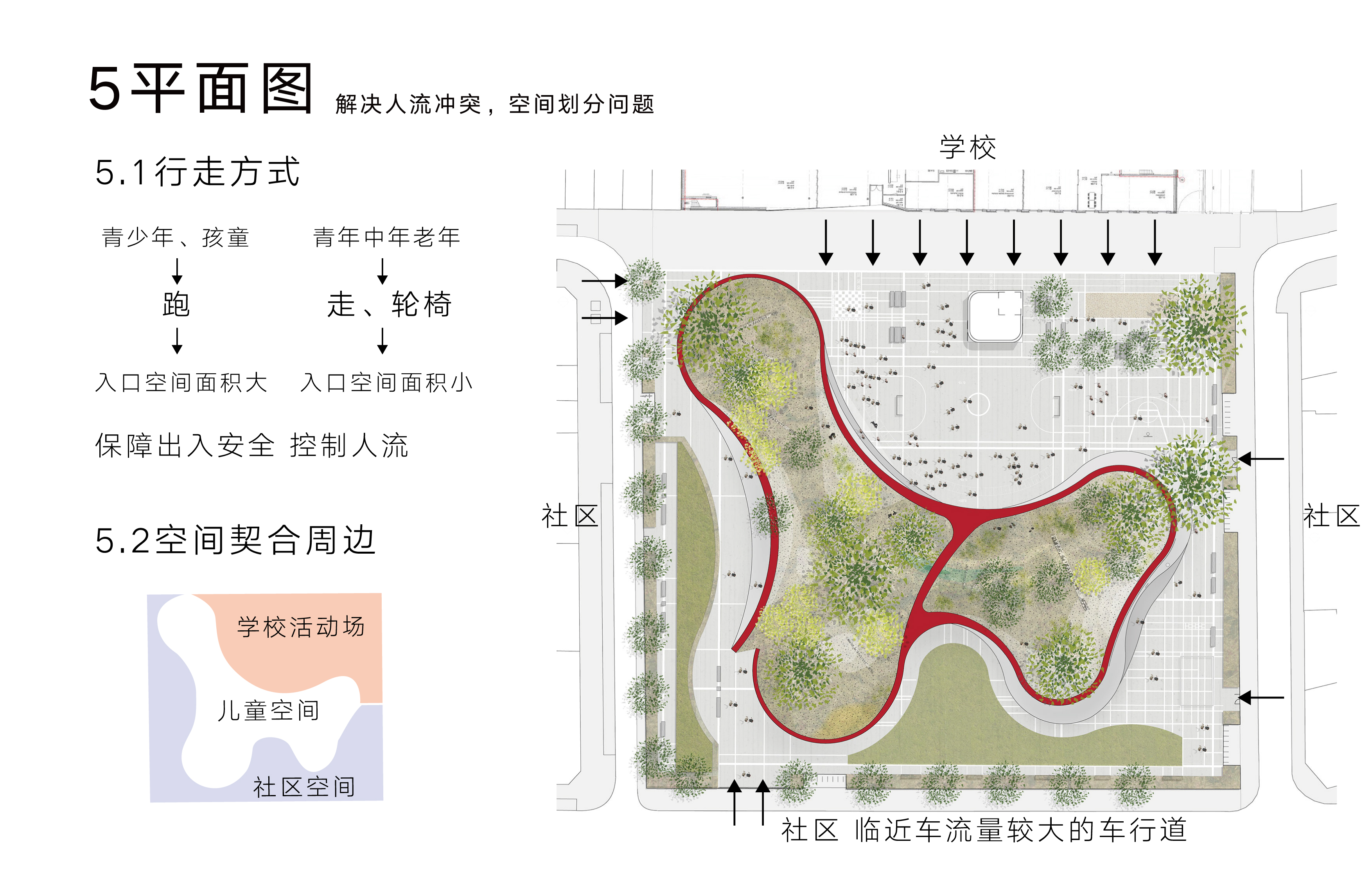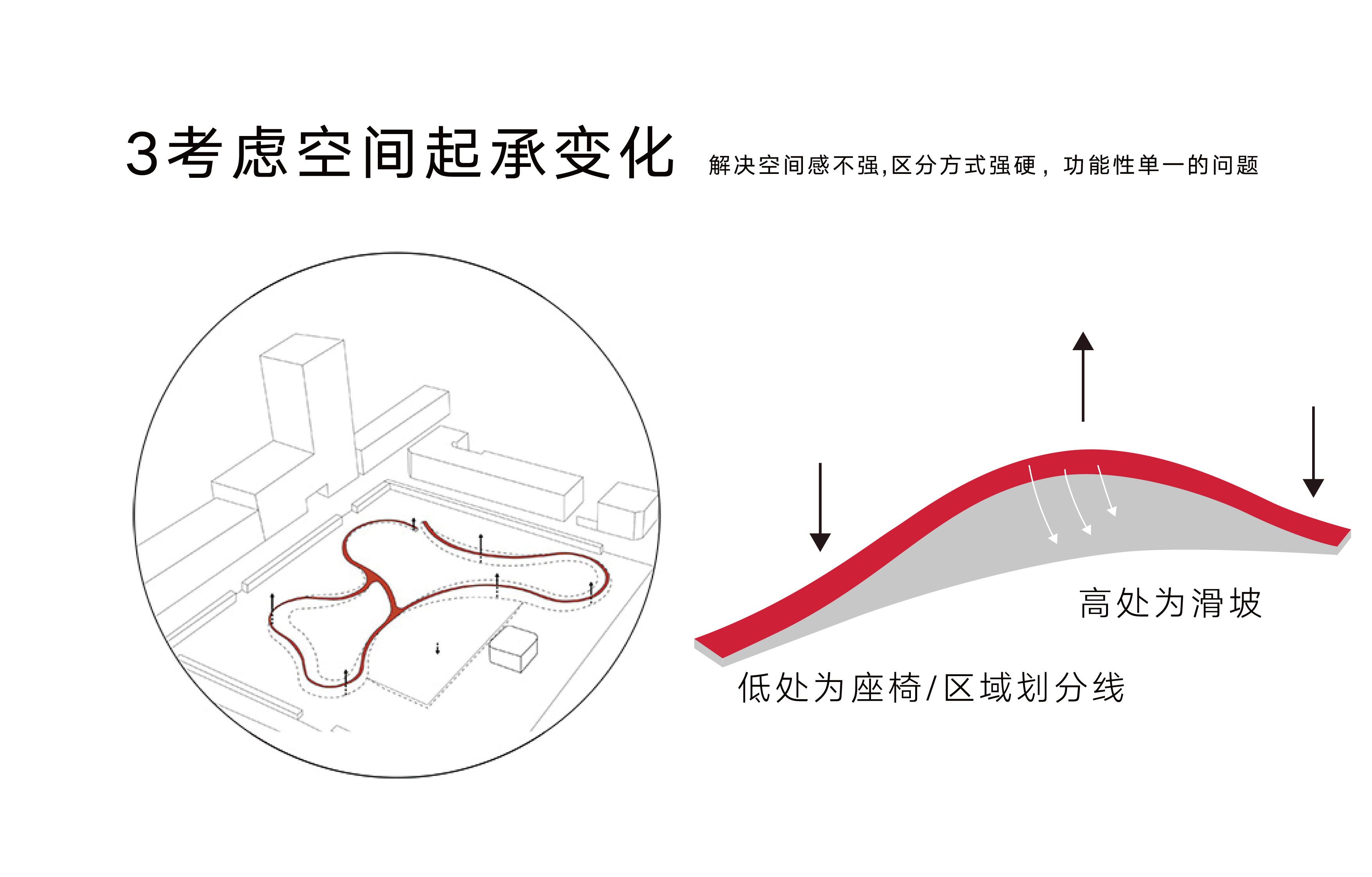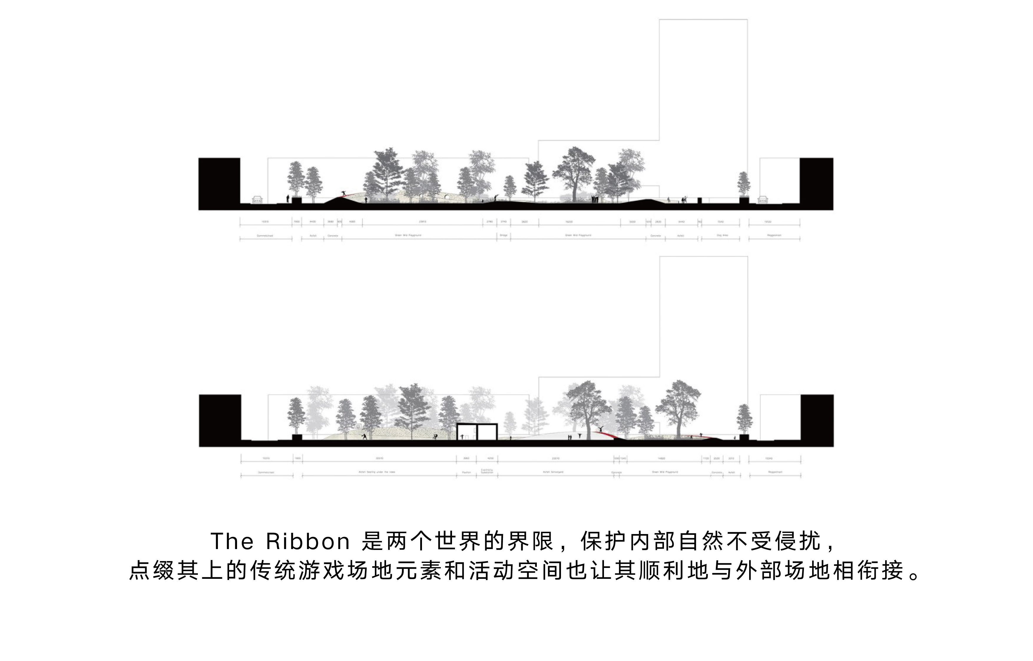 城市广场中时常可见家长与孩童一同出行,城市广场可以作为每个家庭闲时散步的目标点和聚集点。在高密度的城市中预留开放场所已所属不易,而在广场之中提供儿童与成人游玩的并行空间,提供一处能够让陪护者共同游乐,共同活动的空