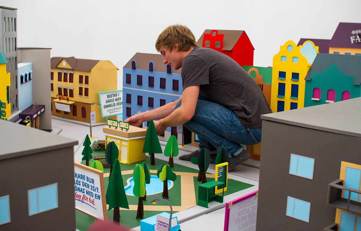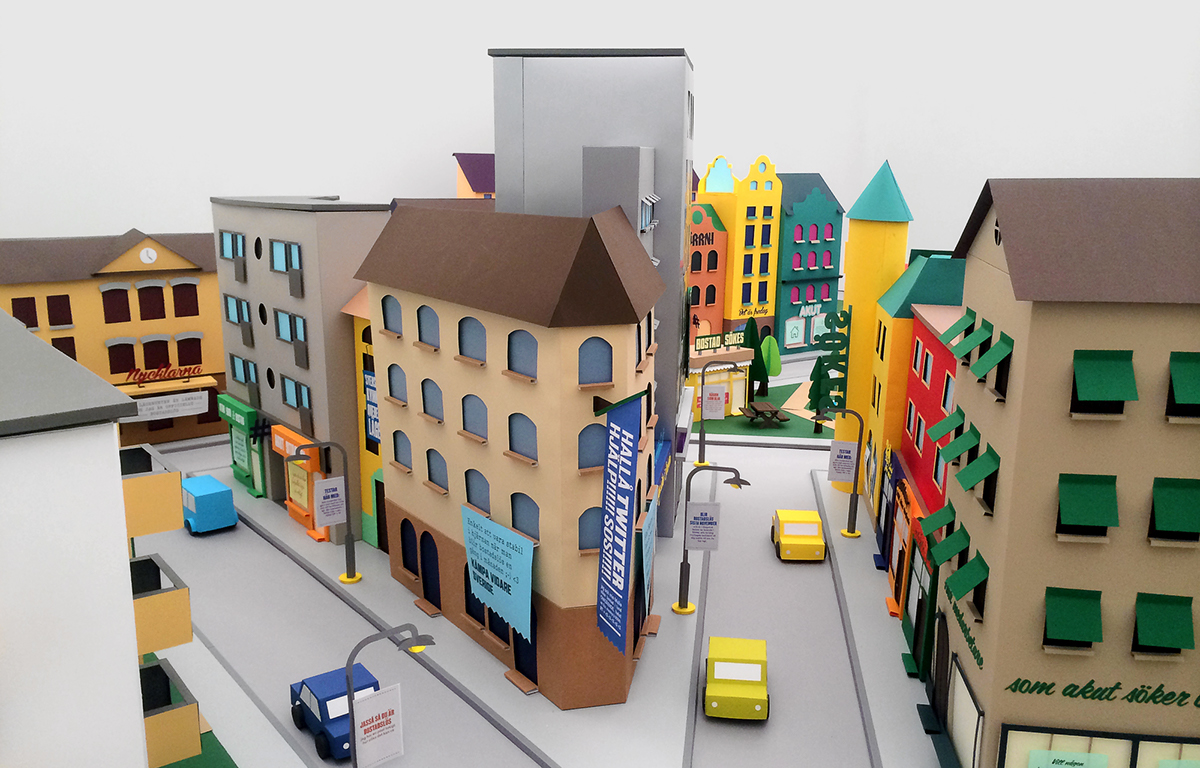 (国外的设计师好喜欢动手做手工发现没有,自己用卡纸搭房子做场景,而我们估计第一时间想到的是用ps或AI画出来对不对?)