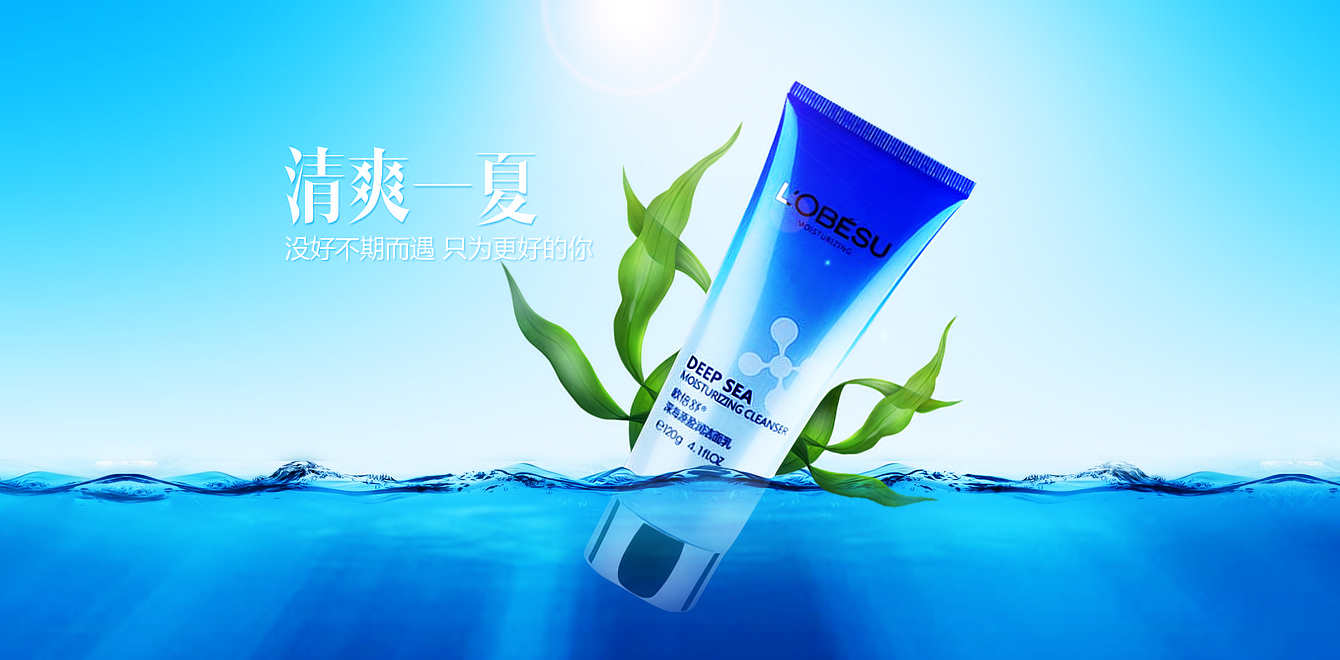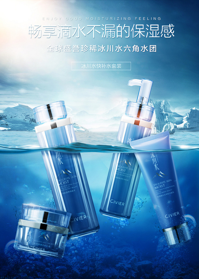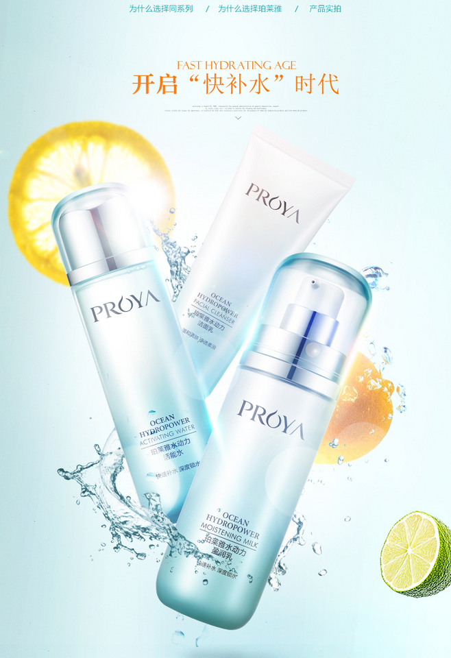 与水相关的产品海报设计,干净最重要!特别是化妆品这里产品,画面不干净很难对受众有好的印象。所以对以上作业做了很多减法。
