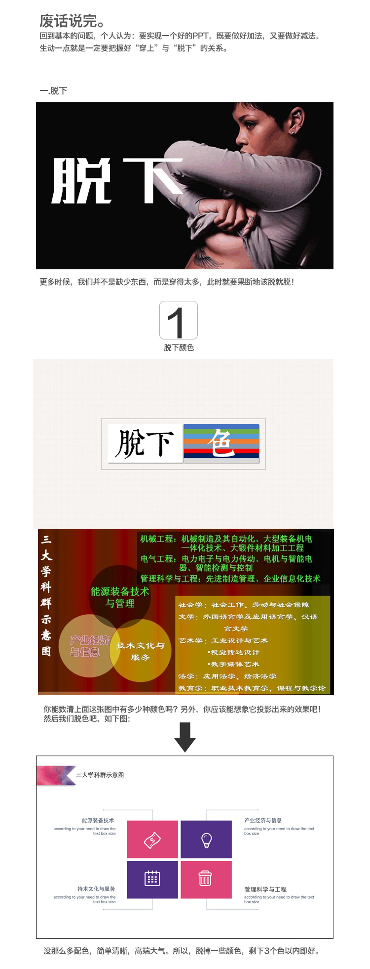 很多人做设计和PPT的很多共性,但却有很多不同点,本文把PPT比喻人体,里面的内容比喻衣服,如何让人觉得你穿的衣服好看呢,就同你做出的PPT如何了!