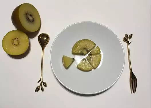 这是一个讲述猕猴果维生素数值的饼状图,不用文字描述,用户一眼就能从这种风格中感受到品牌调性,把它放入时尚饮食杂志也绝不违和。