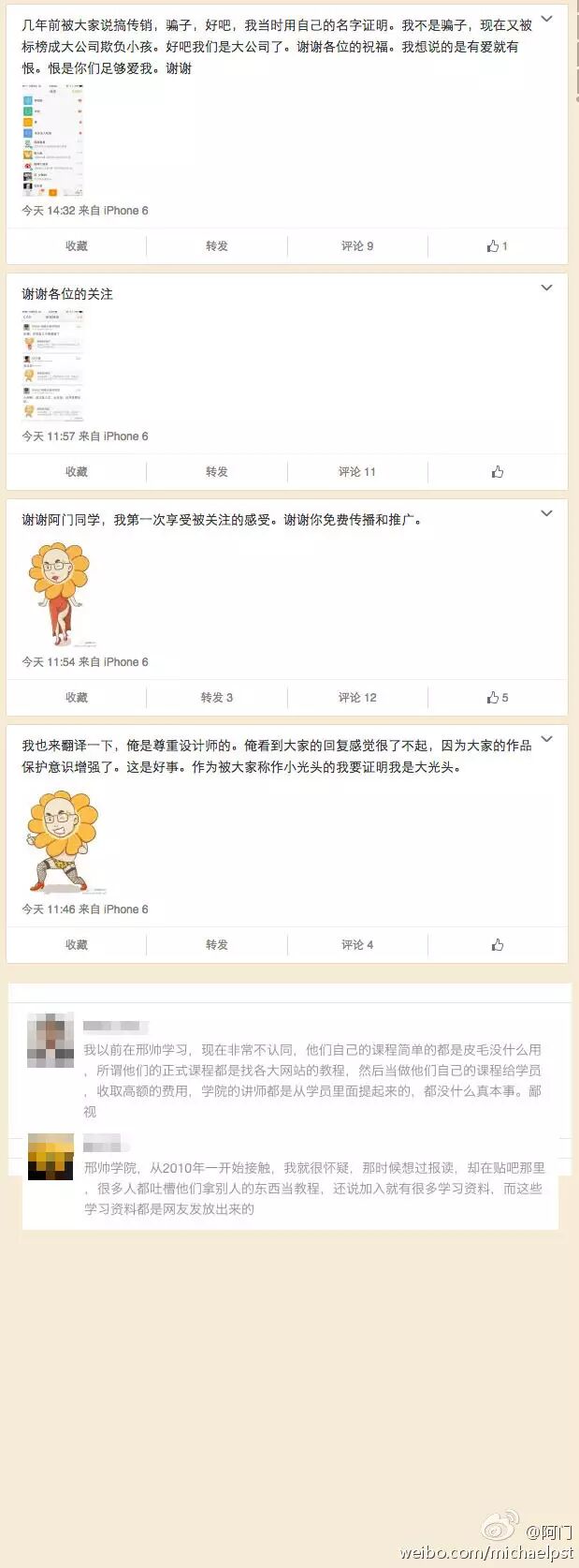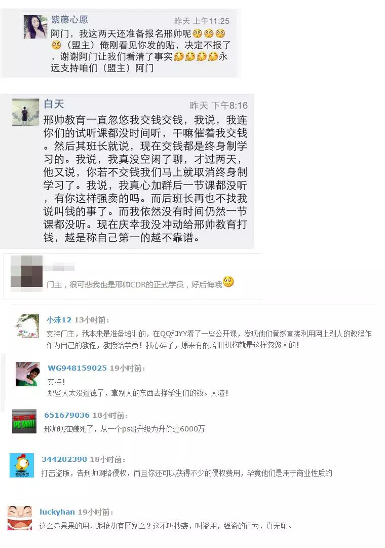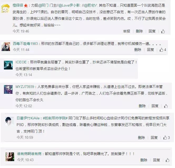 在2015年初,臭名昭著的邢帅学院,因盗用我的免费教程商业收费课程,而且态度恶劣而被我在站酷上发帖而公告天下。