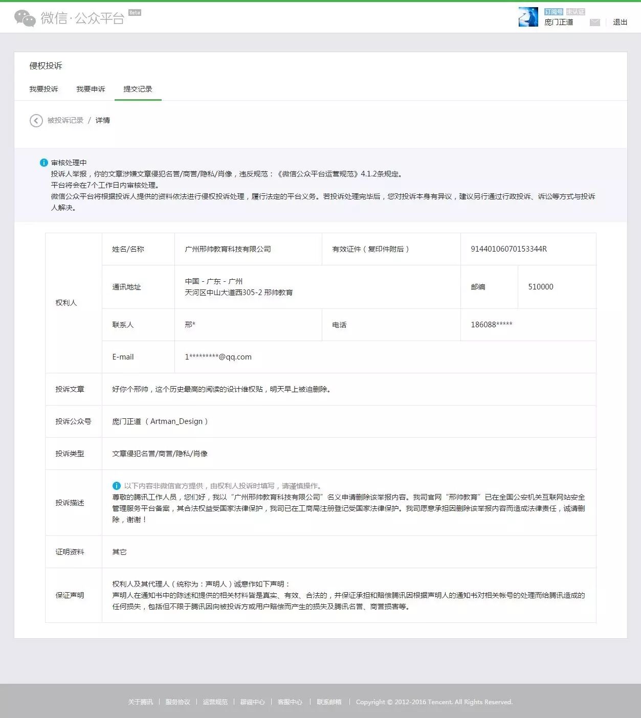现收到“广州邢帅教育科技有限公司”举报您在站酷网发布作品