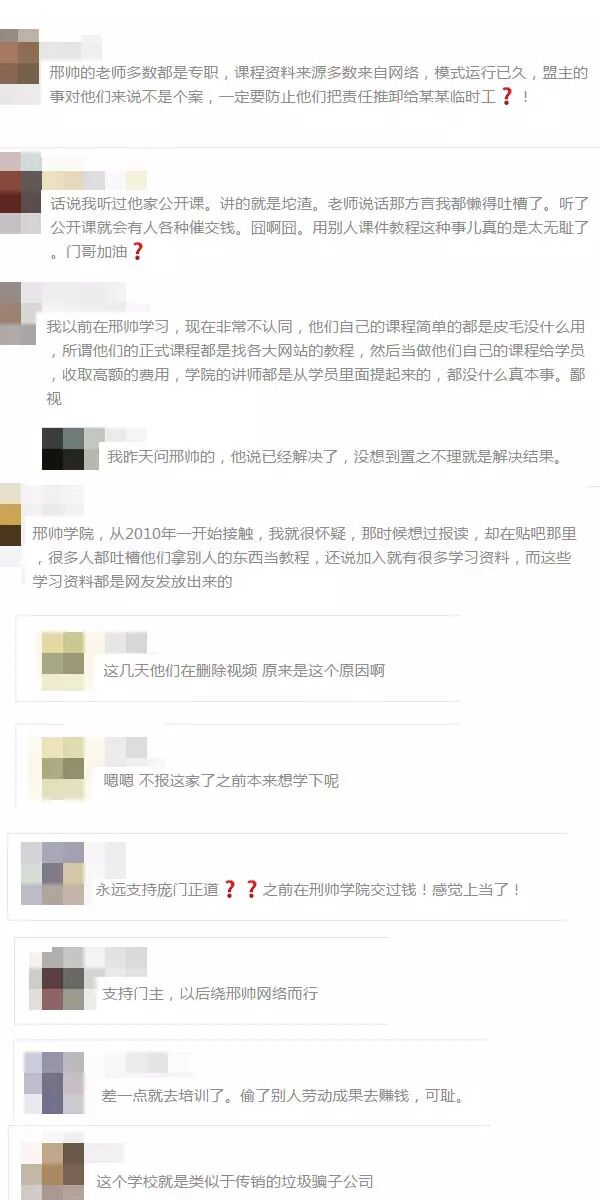 可以趁着没删帖的那几个小时,好好看下大家对邢帅学院这个帖子下的各种爆料。