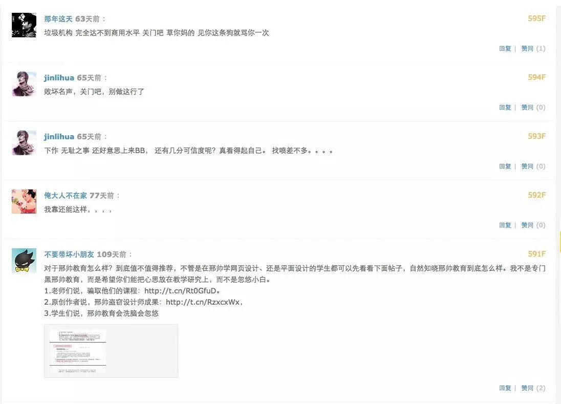 听闻你们最近拿了几个亿的融资,都准备上市了,难怪出来清理自己的负面信息了,站酷上,百度贴吧,各大论坛,够你们忙的,不过删帖费估计也不少,有钱使得鬼删帖,这么多年做出来的种种负面,慢慢整吧。
