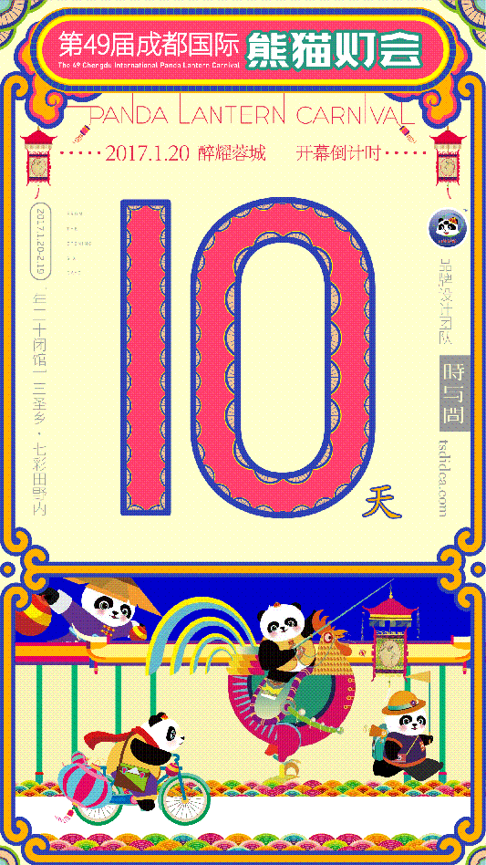 古有闻鸡起舞,今有金鸡游园,有着德禽之称的金鸡和熊猫同行在灯的海洋里,金鸡报晓着新年的盛景,灯会展示着远古的盛世,熊猫游历在文化的路途。前路像灯海一样通明,来年如灯会一般祥瑞。灯会结合熊猫形象,办只属于成都的特色熊猫灯会。时与间团队为这样的一场盛会做品牌视觉推广设计,集灯会特色,融品牌理念。