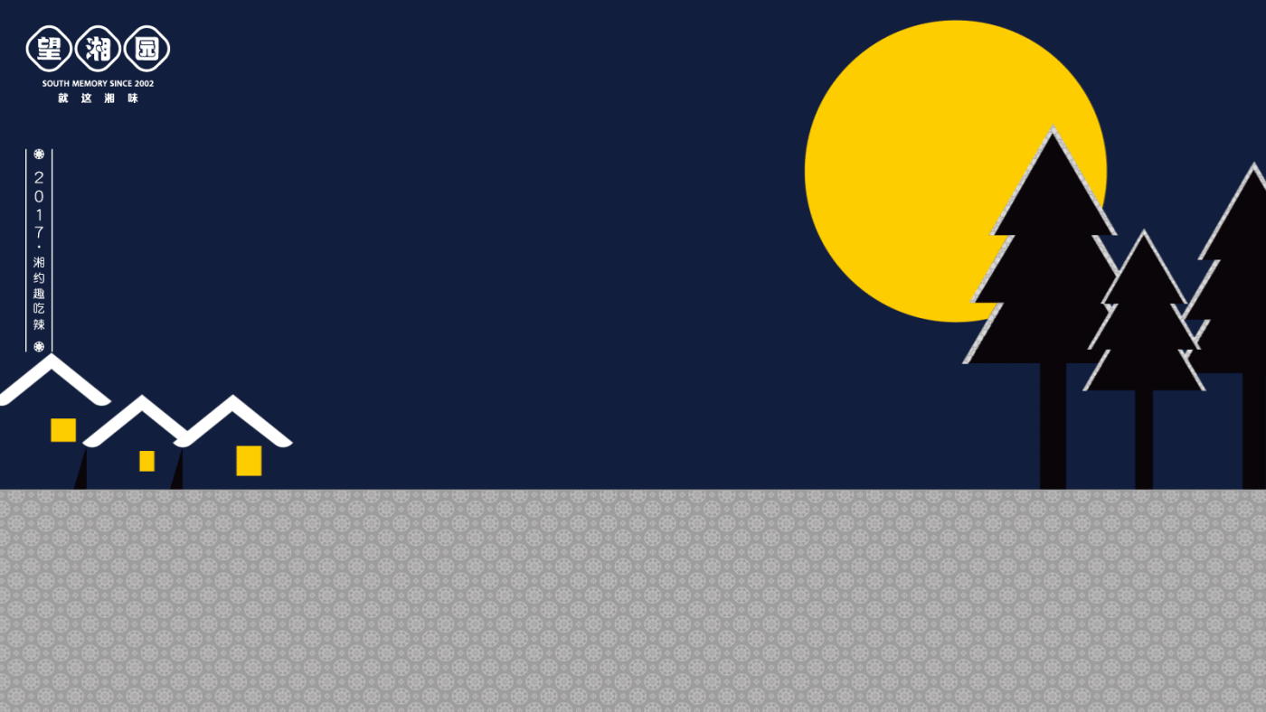 结合望湘园菜品——“辣”的特色,以及圣诞元旦的节日氛围,我们产生了系列海报的主题口号——“2017,湘约趣吃辣”。为了让海报,充满趣味性,我们采用了插画+动图的形式,并融入望湘园菜品的食材:牛蛙、辣椒、鸡蛋、鸡、鱼、蘑菇以及他们家的辣椒人卡通形象,而且在每幅平面海报中加入望湘园的品牌基因——花纹,该花纹是我们在望湘园logo的菱形框基础上经过变形得到的。为了进一步增加海报的趣味性,每一个平面海报,我们都根据圣诞节以及元旦的节日氛围,构思有趣、幽默的场景,既帮助望湘园完成本次节日传播的诉求,又增强受众视觉体验的趣味性。