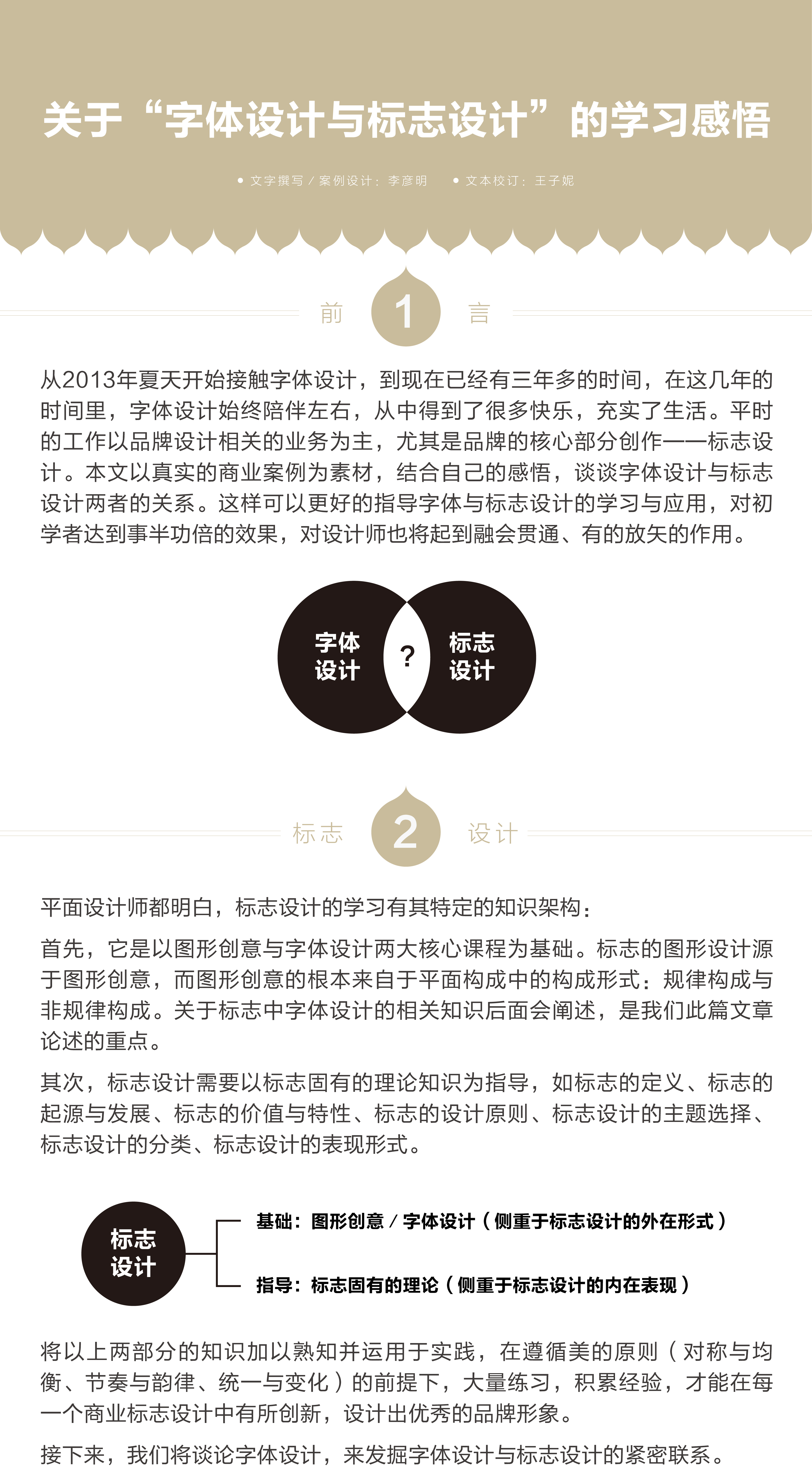 好久不见,大家好!分享一篇关于“字体设计与标志设计”的学习感悟,本文以真实的商业案例为素材,结合自己从业的感悟,从标志设计知识的架构、字体设计相关知识、中英文标准字体设计、文字标志设计的知识来探讨字体与标志设计两者的关系,希望大家喜欢...