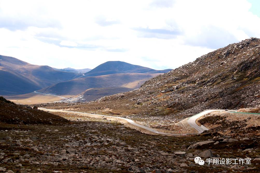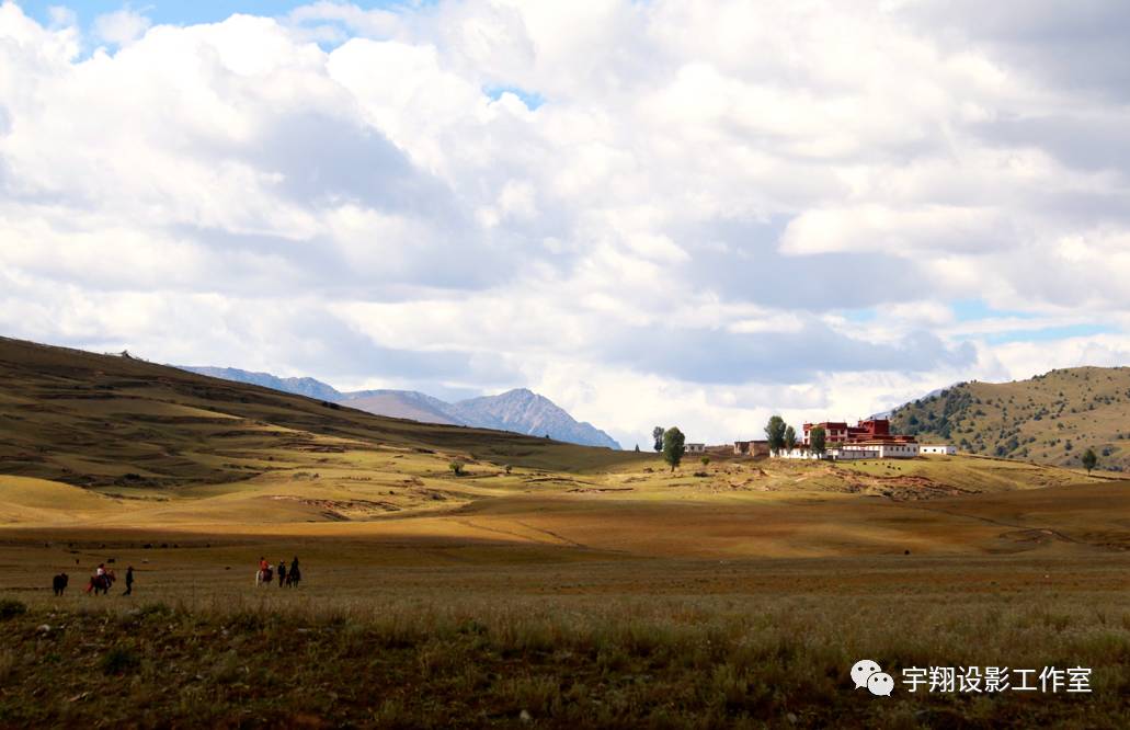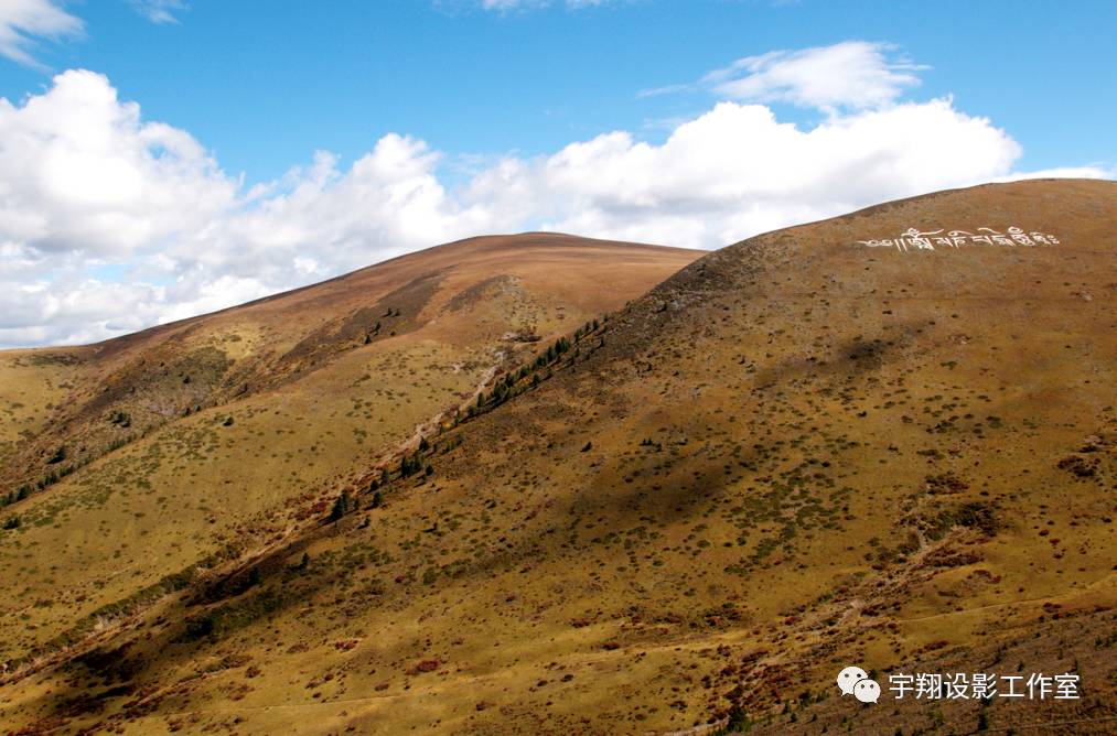 远处望去,山脉连绵起伏,用藏文书写的六字真言印于山顶,祈祷着平安。